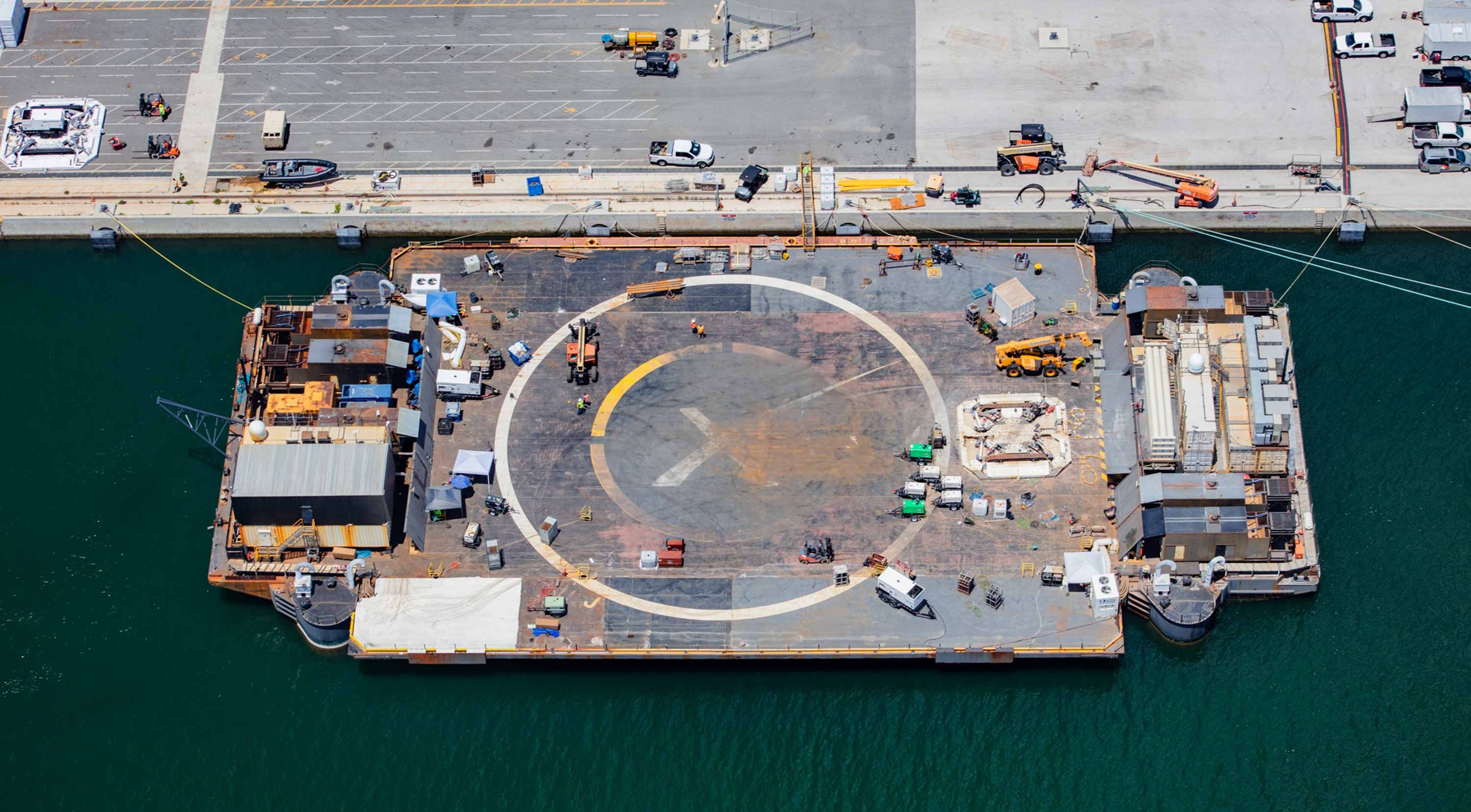 Our photographer Jenny Hautmann had the opportunity to fly up above Cape Canaveral in a helicopter to get some aerial shots of the brand new droneship as it was brought in alongside Tugboat, Finn Falgout.