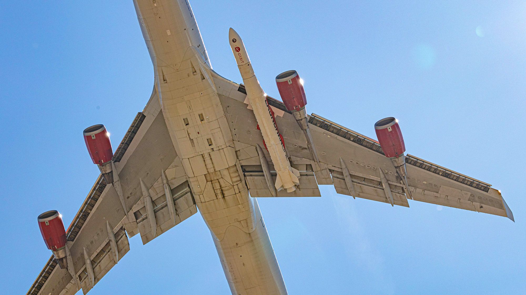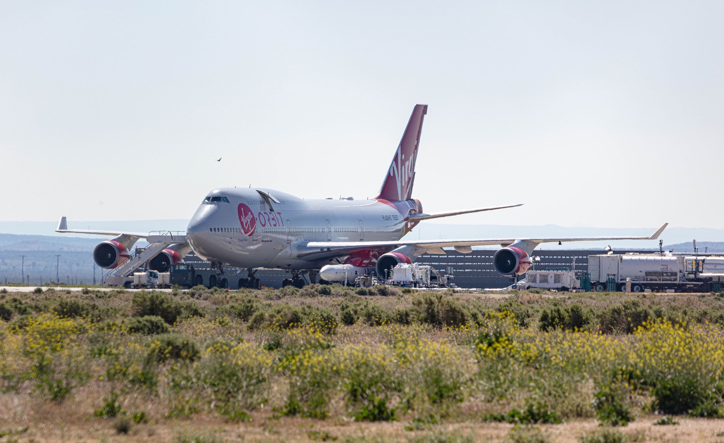 Cosmic Girl took off from Virgin Orbit's Mojave facility and performed everything but the actual launch. Referred to as a cryogenic captive carry test, LauncherOne was loaded with liquid nitrogen that is a similar temperature to the propellent it will actually use to launch––liquid oxygen. This "would pose less of a risk in case anything were to go wrong despite all of our planning — in our LOX tanks for both stages," according to a blog post from Virgin Orbit.