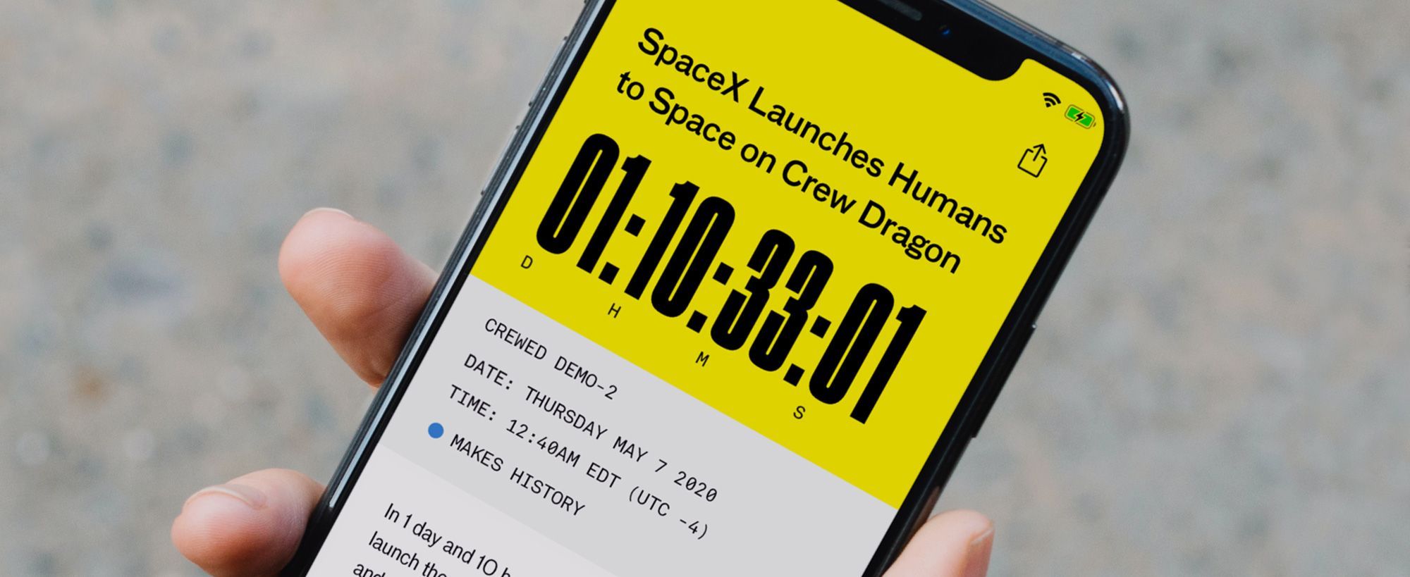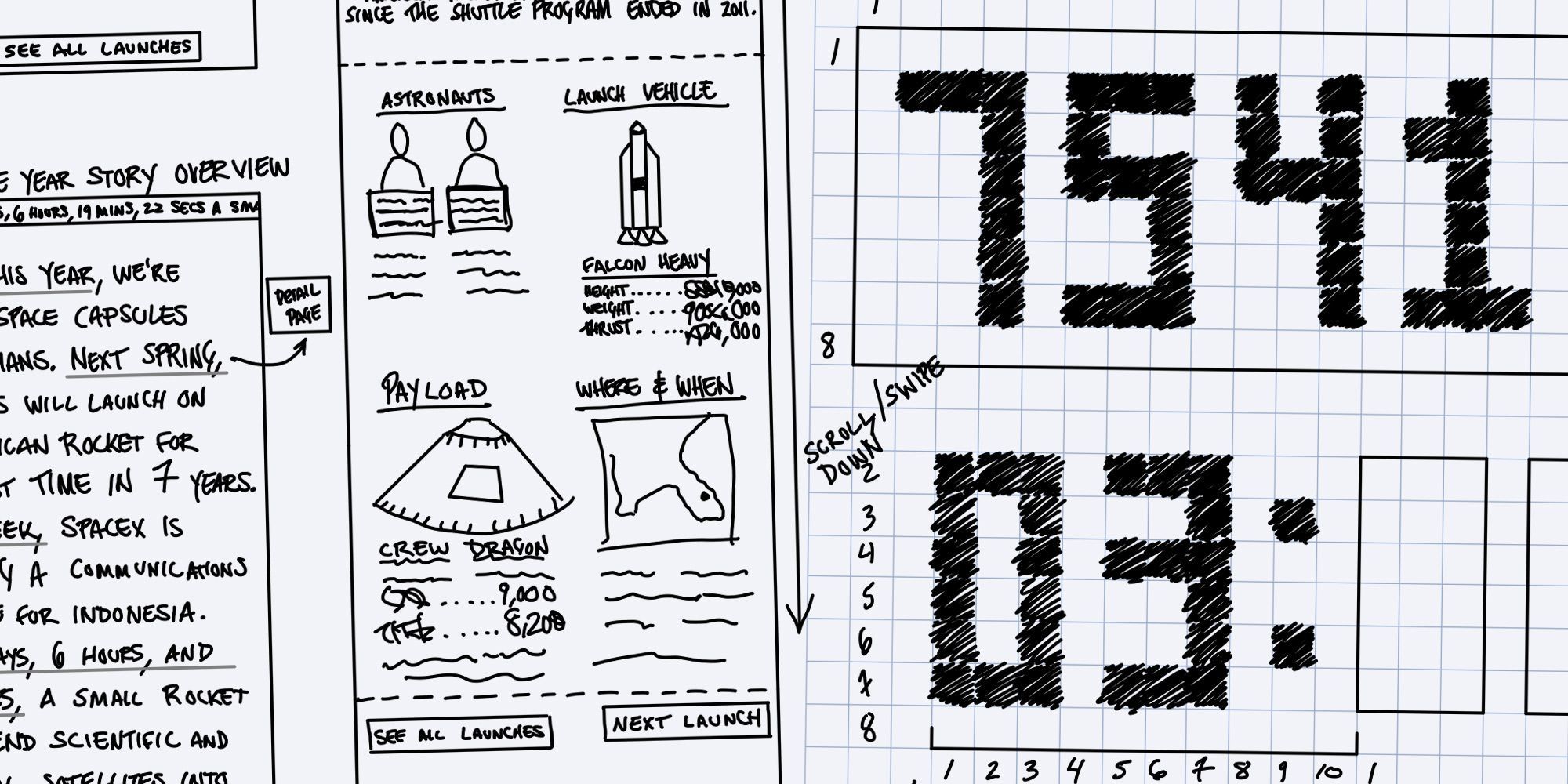 The launch tracker was an important feature for the design team for two reasons. The first is obvious — for space fans it’s a clear and easy way to keep up with humanity’s progress in space exploration, down to the very second. But there’s a secondary and more important reason we built the launch tracker. It was to remind us all that we’re living through the second Golden Age of space, right now.