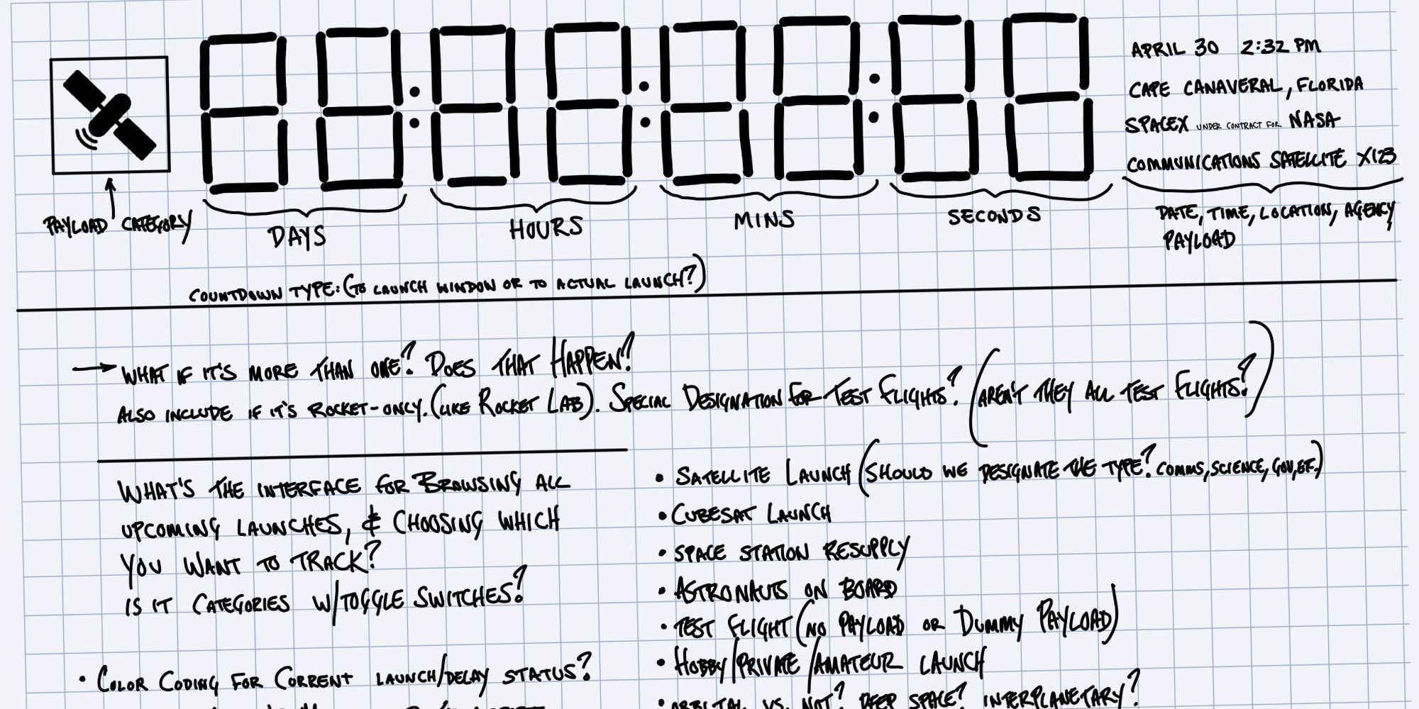 Supercluster designers Joe Haddad and Tristan Dubin designed the web based launch tracker, which laid the foundation for their approach to information design: