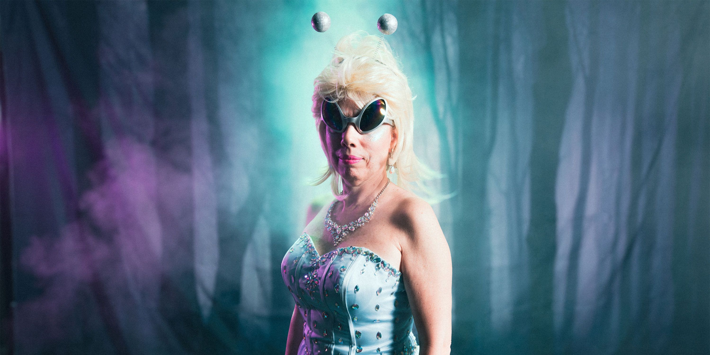 A woman in full alien space queen regalia asked in a surprising and suspicious tone, "Boeing flies astronauts!?"