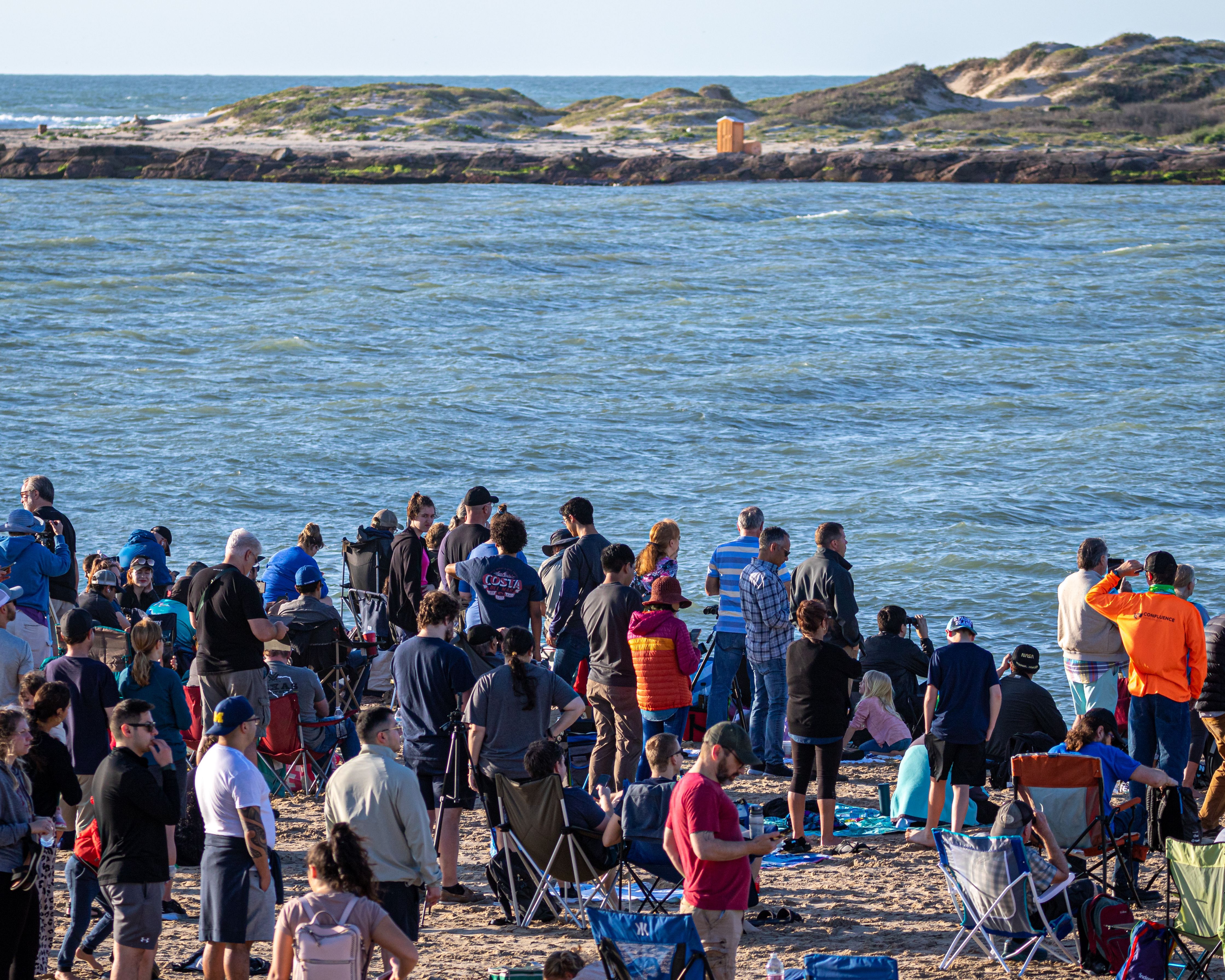 Crowds gather to witness the first flight of Starship by (Erik Kuna for Supercluster)