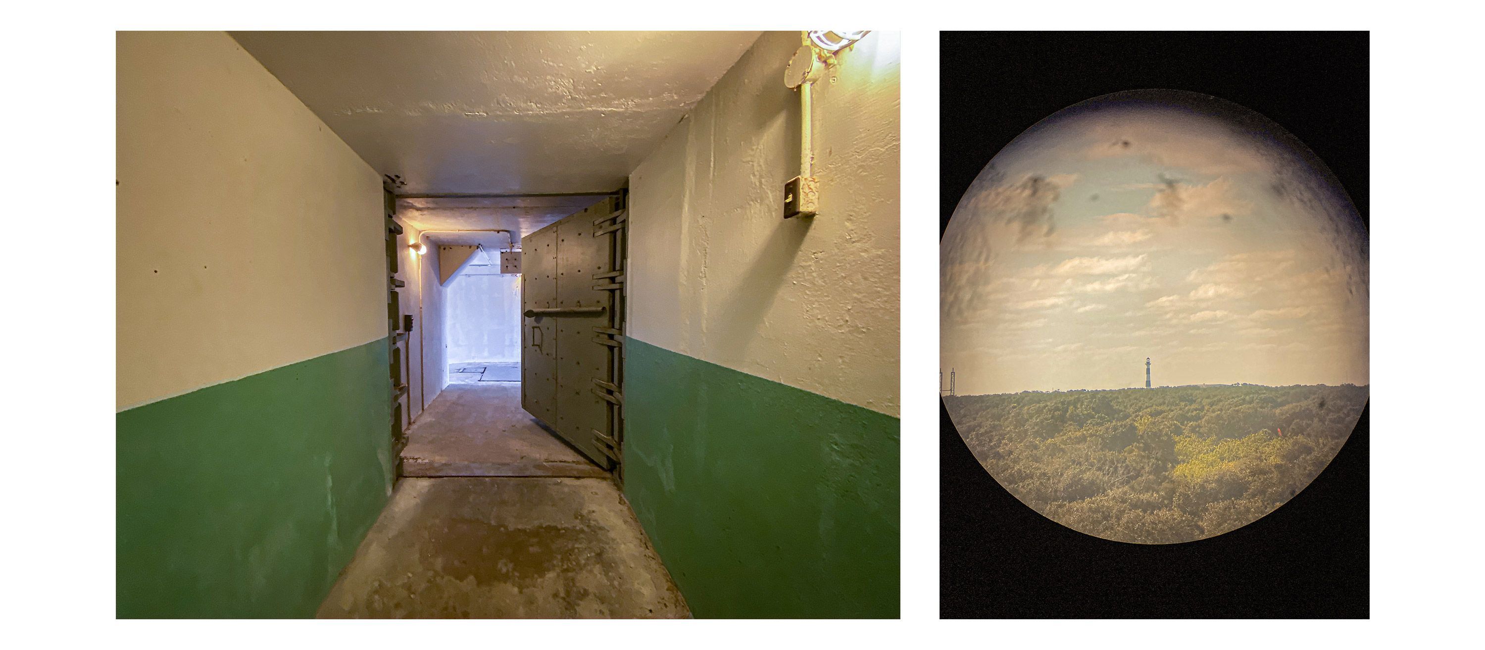 (Left) LC-14 Blast door in the Blockhouse. (Right) Periscope used to view the Launch pad and area around LC-14 from the Blockhouse.