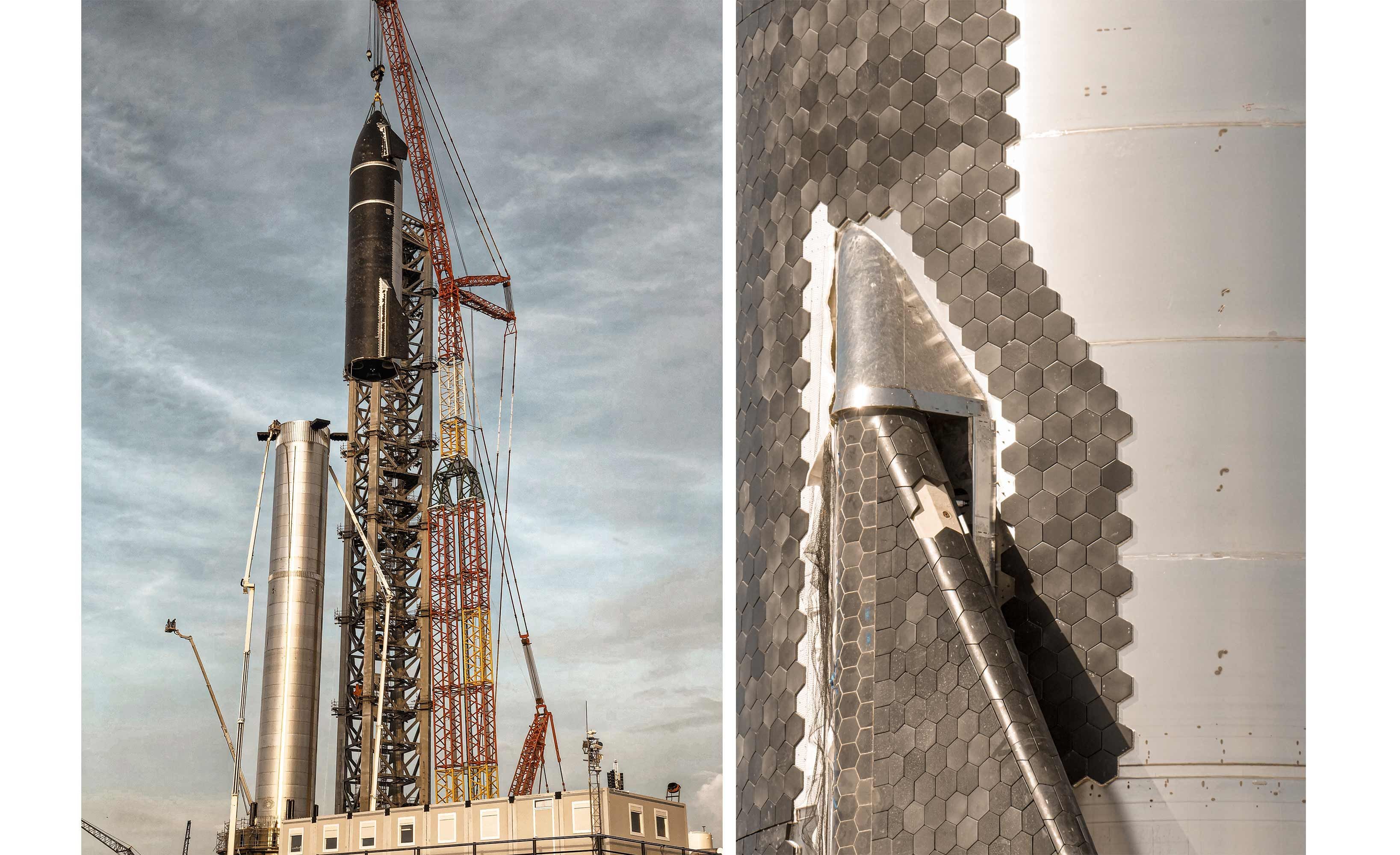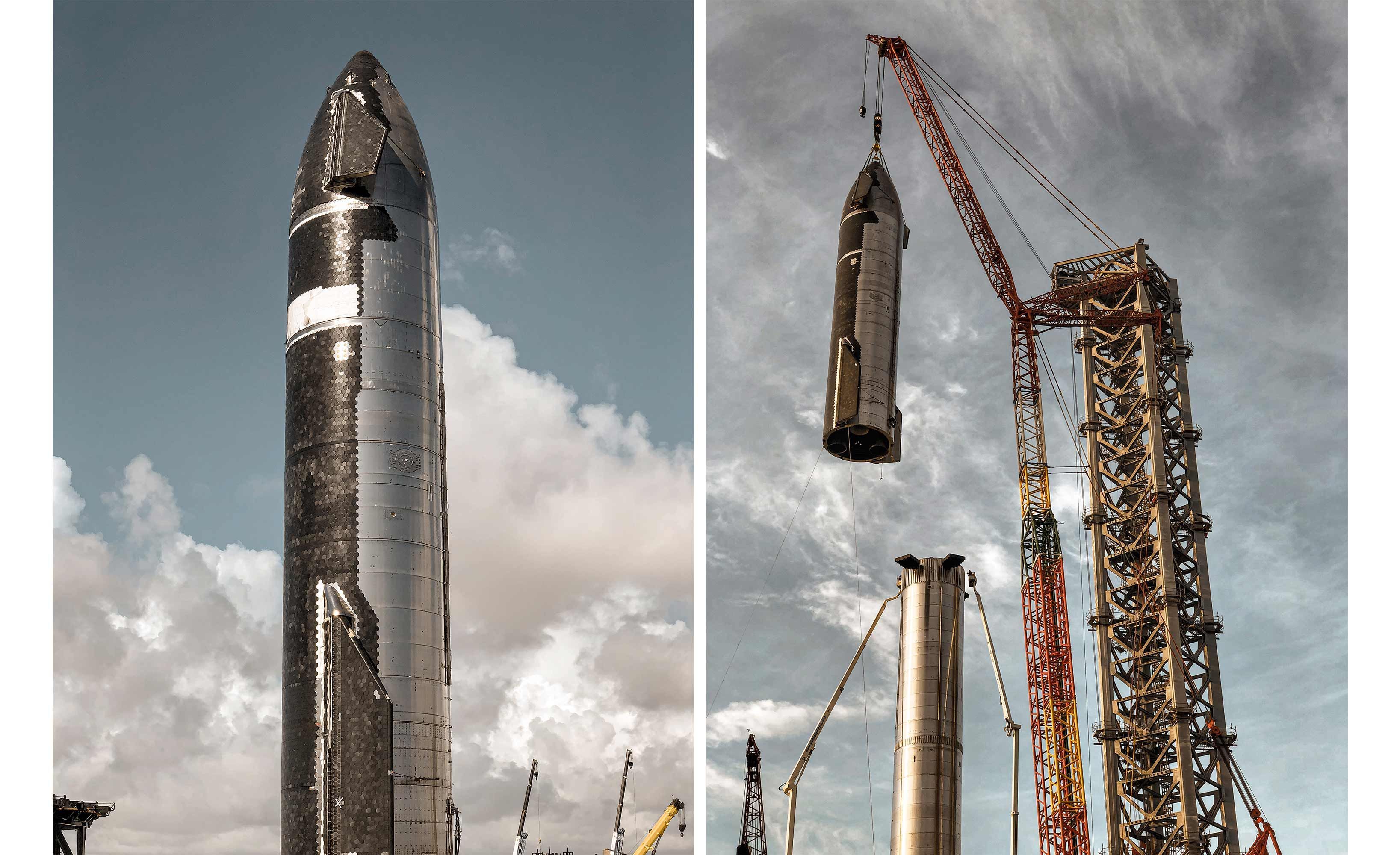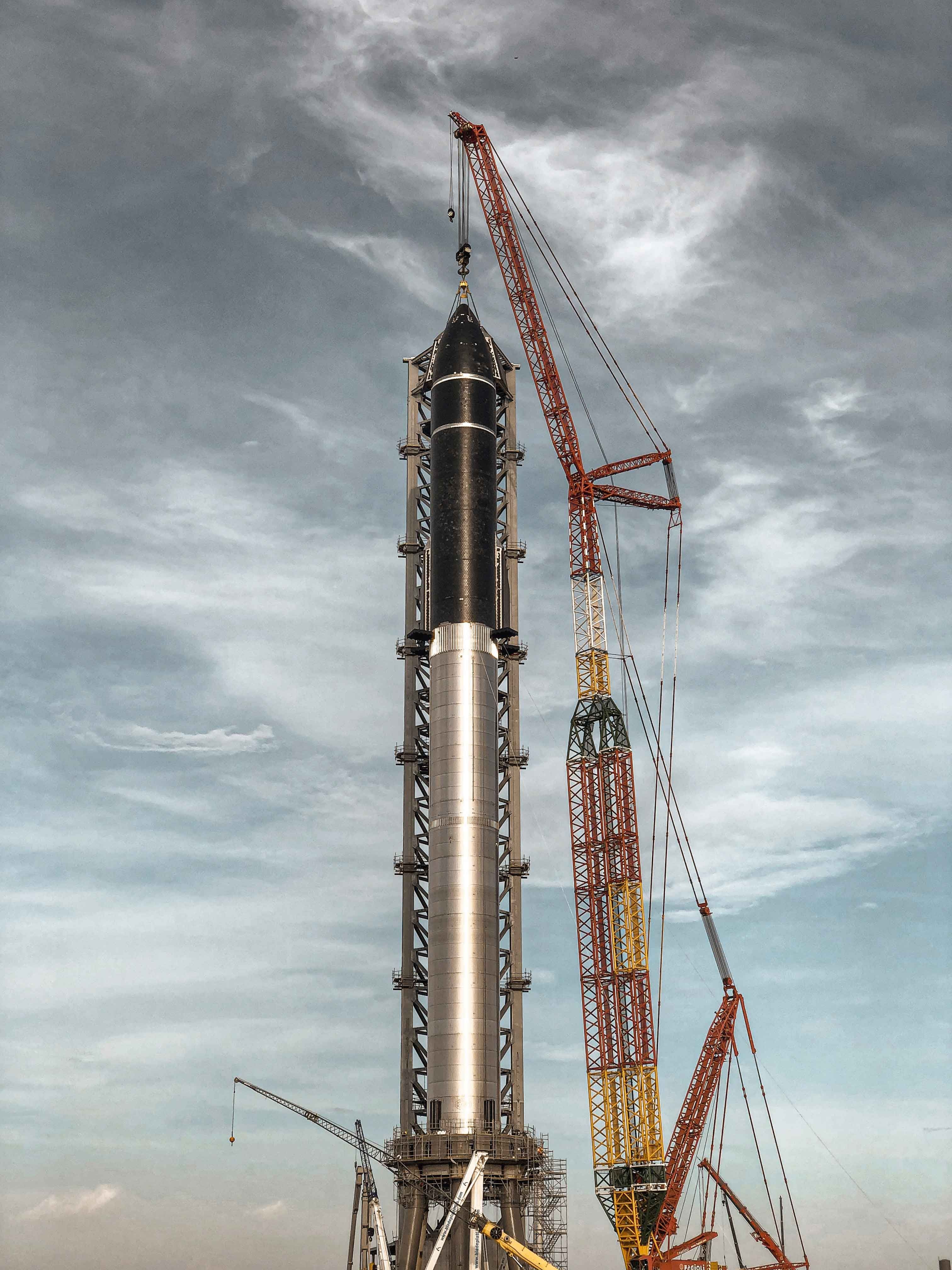 The Starship S20 prototype being lifted onto the B4 booster captured by Deven Perez for Supercluster