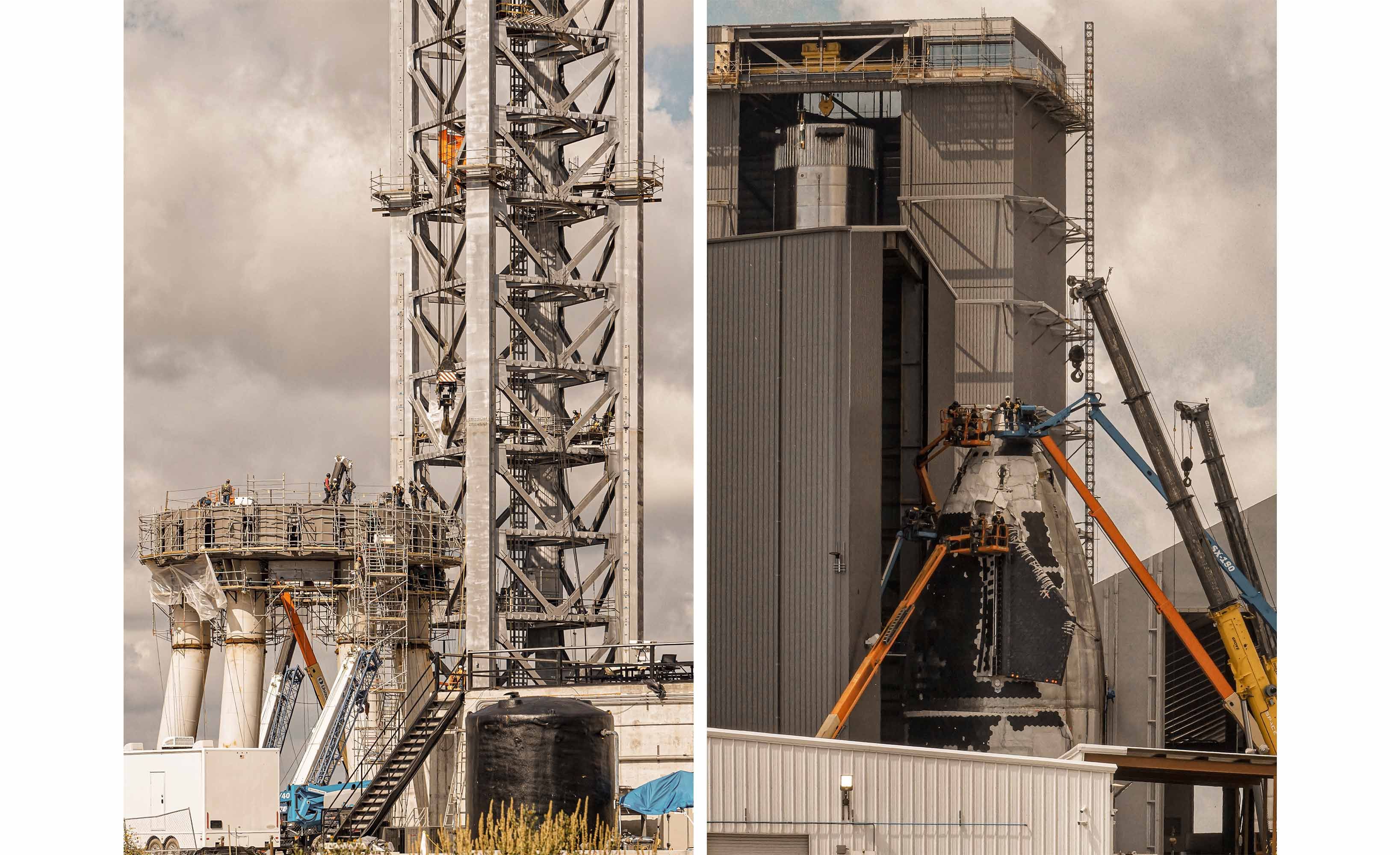 The Starship orbital launch mount and tower are under construction (Deven Perez for Supercluster)