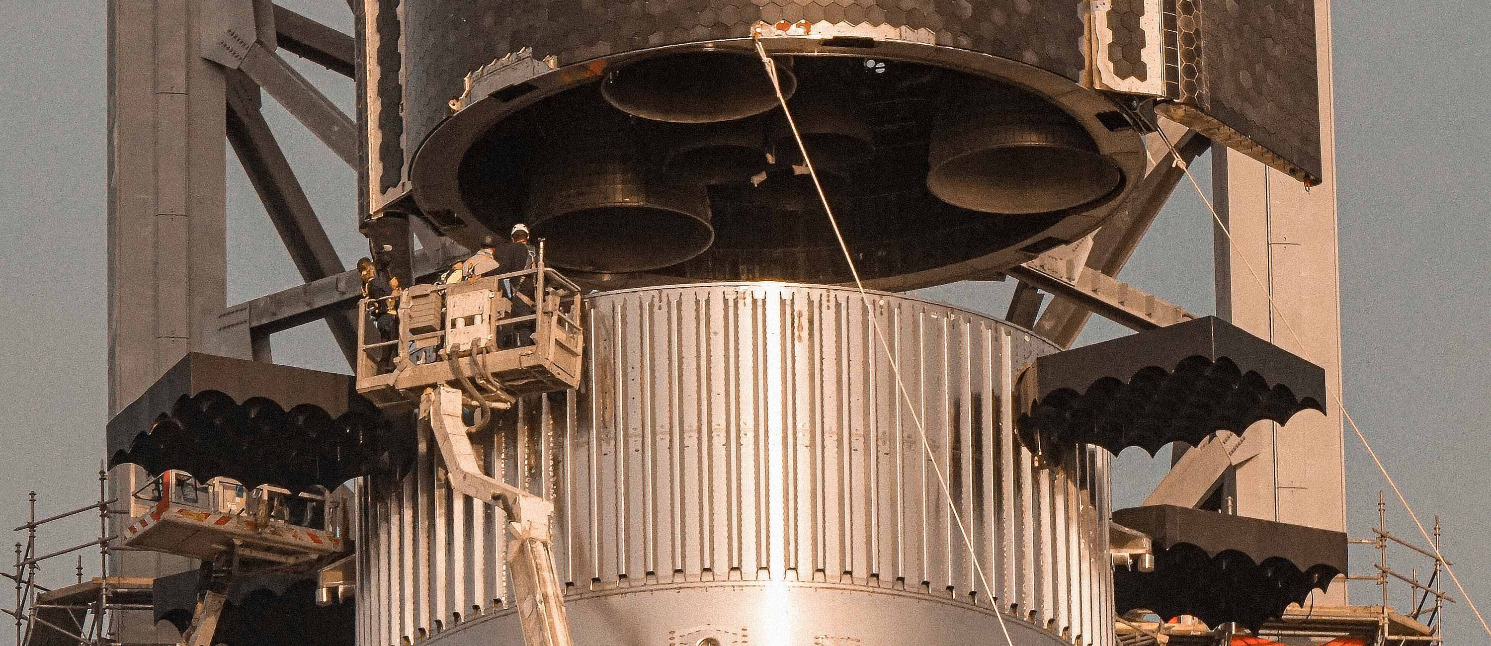 SpaceX has installed massive grid fins on the Super Heavy booster for flight control (Deven Perez for Supercluster)