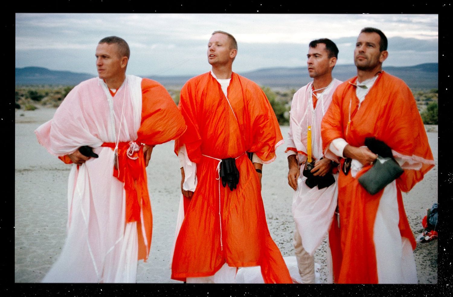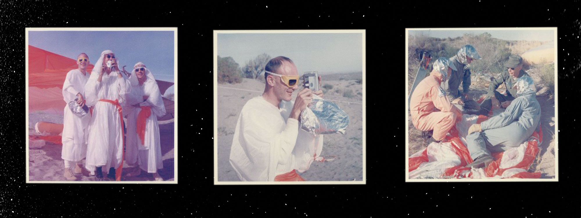 The photos from this period are surreal. Some of the most highly trained test pilots and engineers of their day, soon to explore another world for the first time, caught somewhere between Lawrence of Arabia and Swiss Family Robinson.