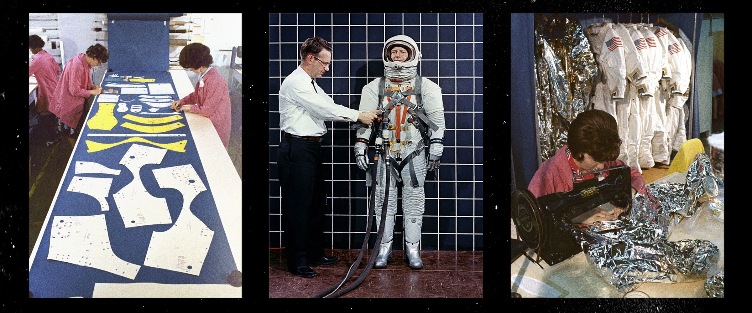 “You had all these badass seamstresses and pattern makers wrestling these materials, cutting, sewing, and cementing them together,” says Gene. “I became inspired by their hands-on process, and highly considered detailing. I started a project to celebrate this era of space race material engineering and the talented artisans at Playtex and NASA who made all this possible.”