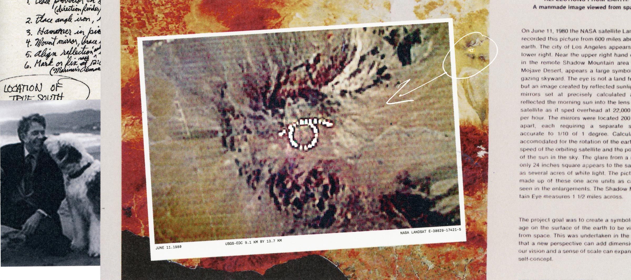 Owing to the low resolution of satellite photography at the time, each group of three mirrors would saturate the telescope’s camera, and shine as bright as an acre in the image. Such an image would not be possible today, as modern satellite camera technology is simply too good. Tom struck at the perfect moment, when the technology for this sort of project was available, but before it became so advanced as to render the artwork impossible.