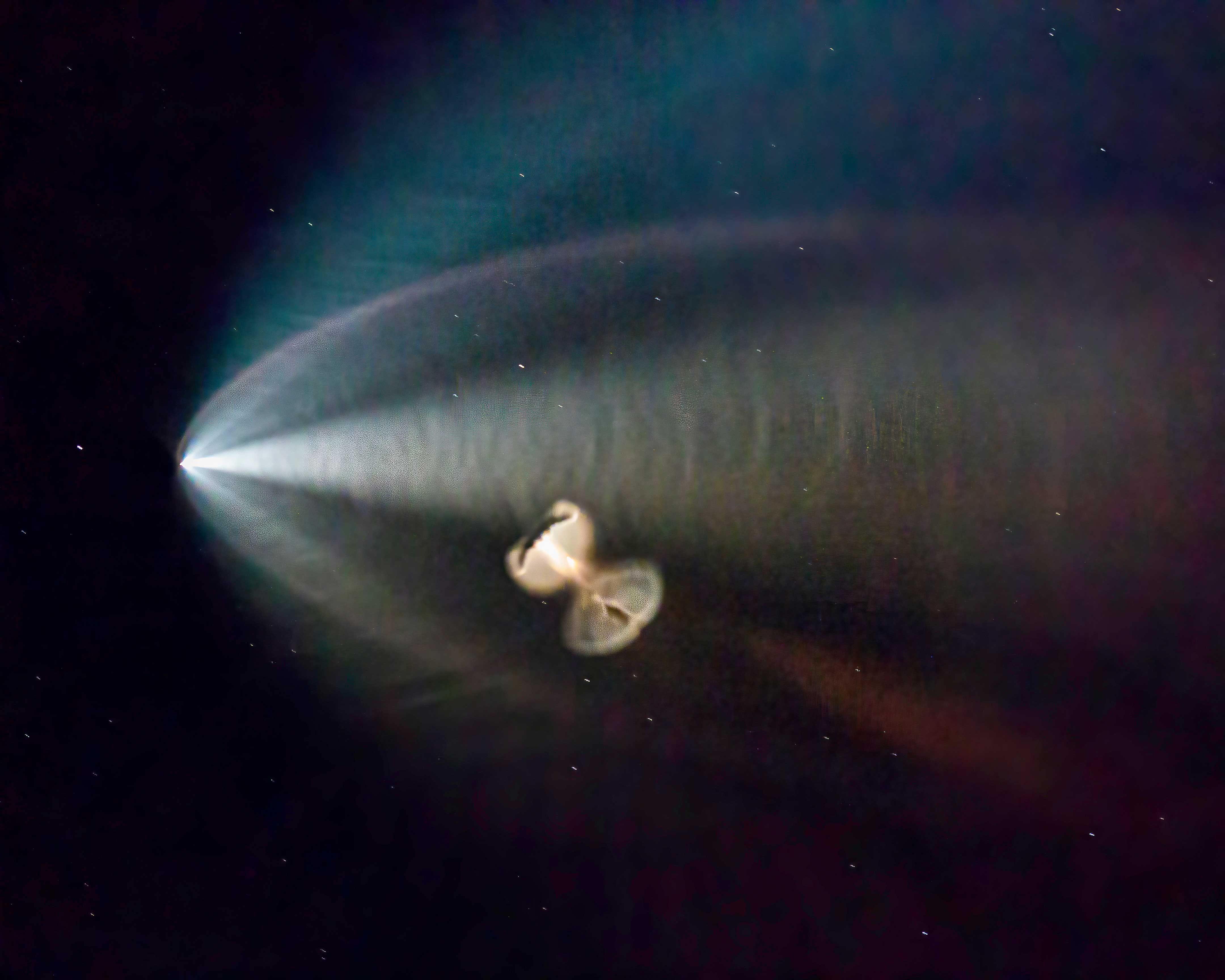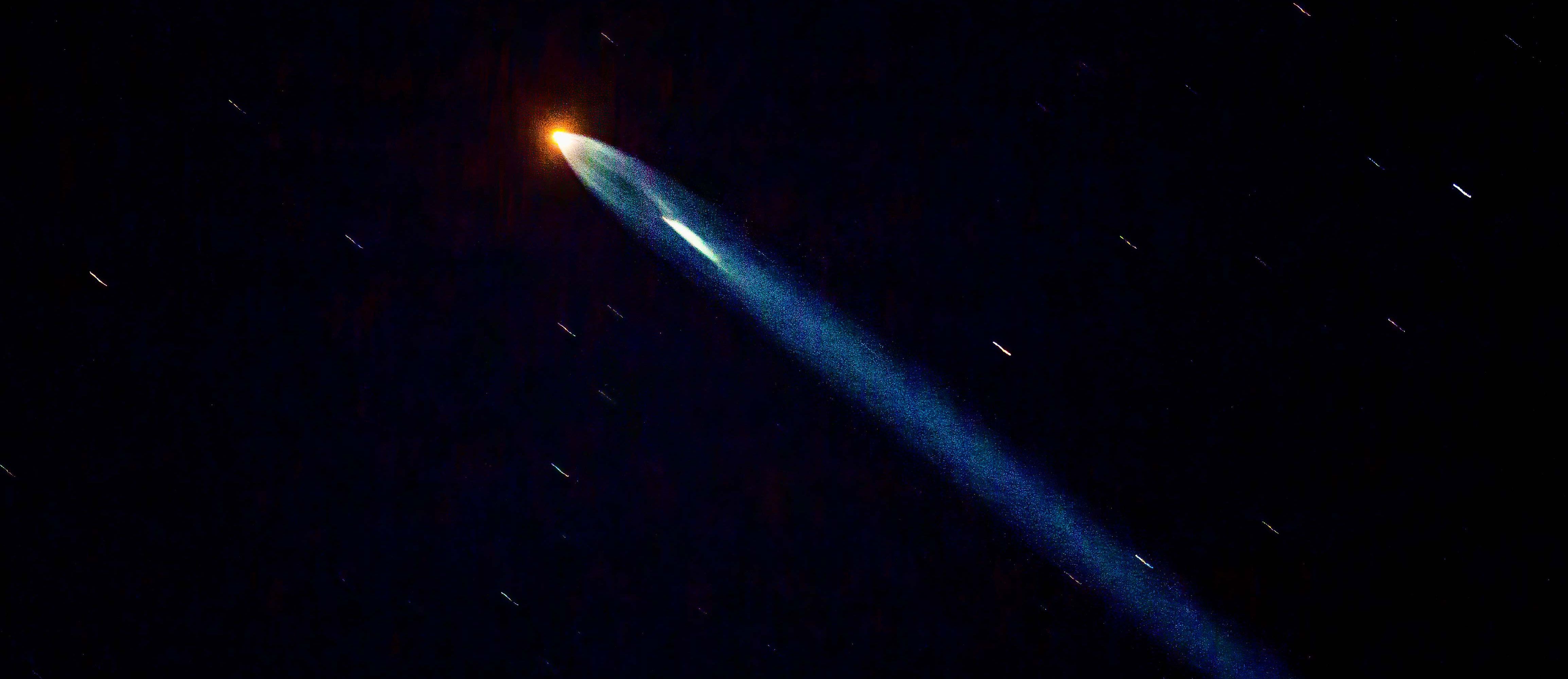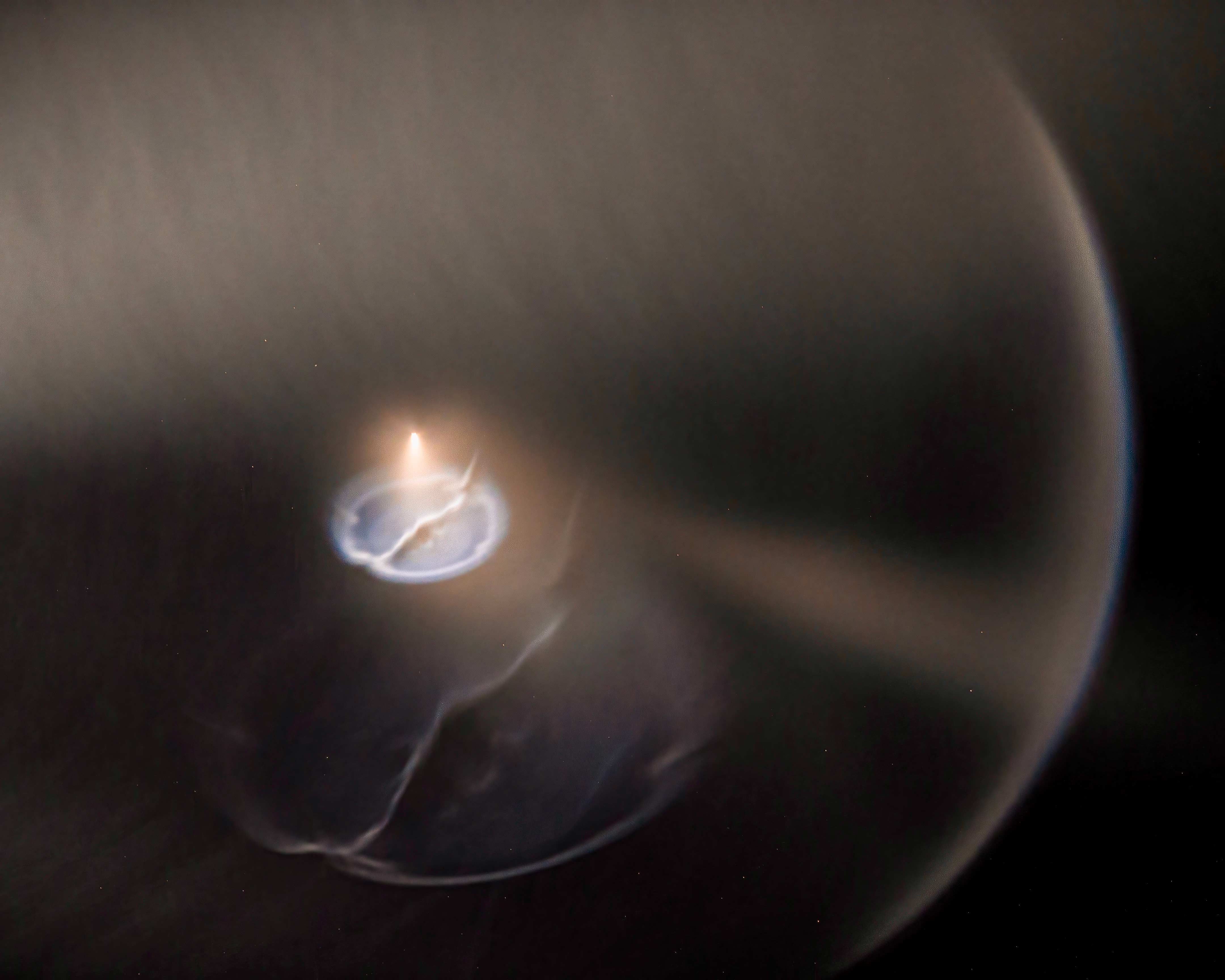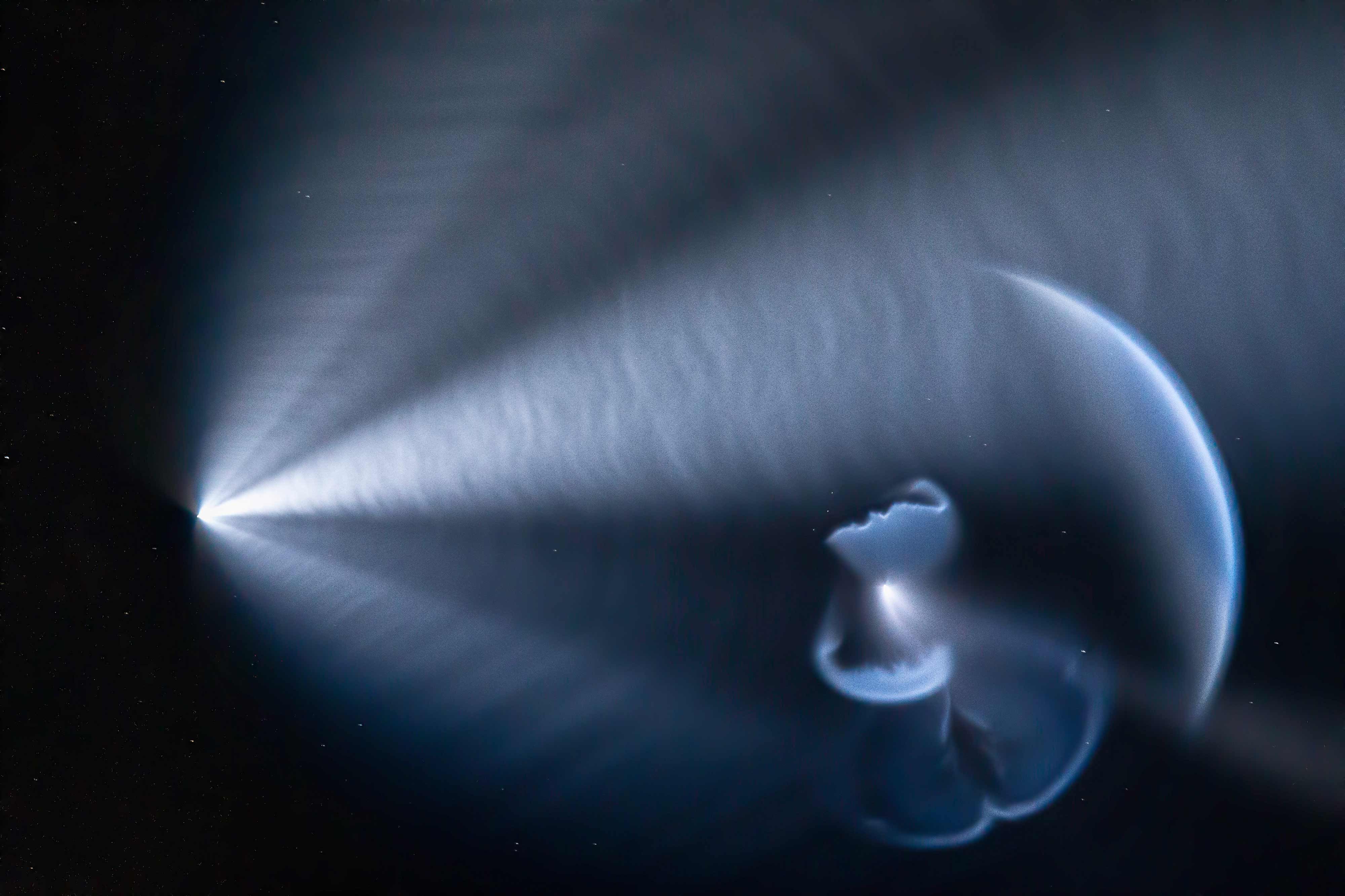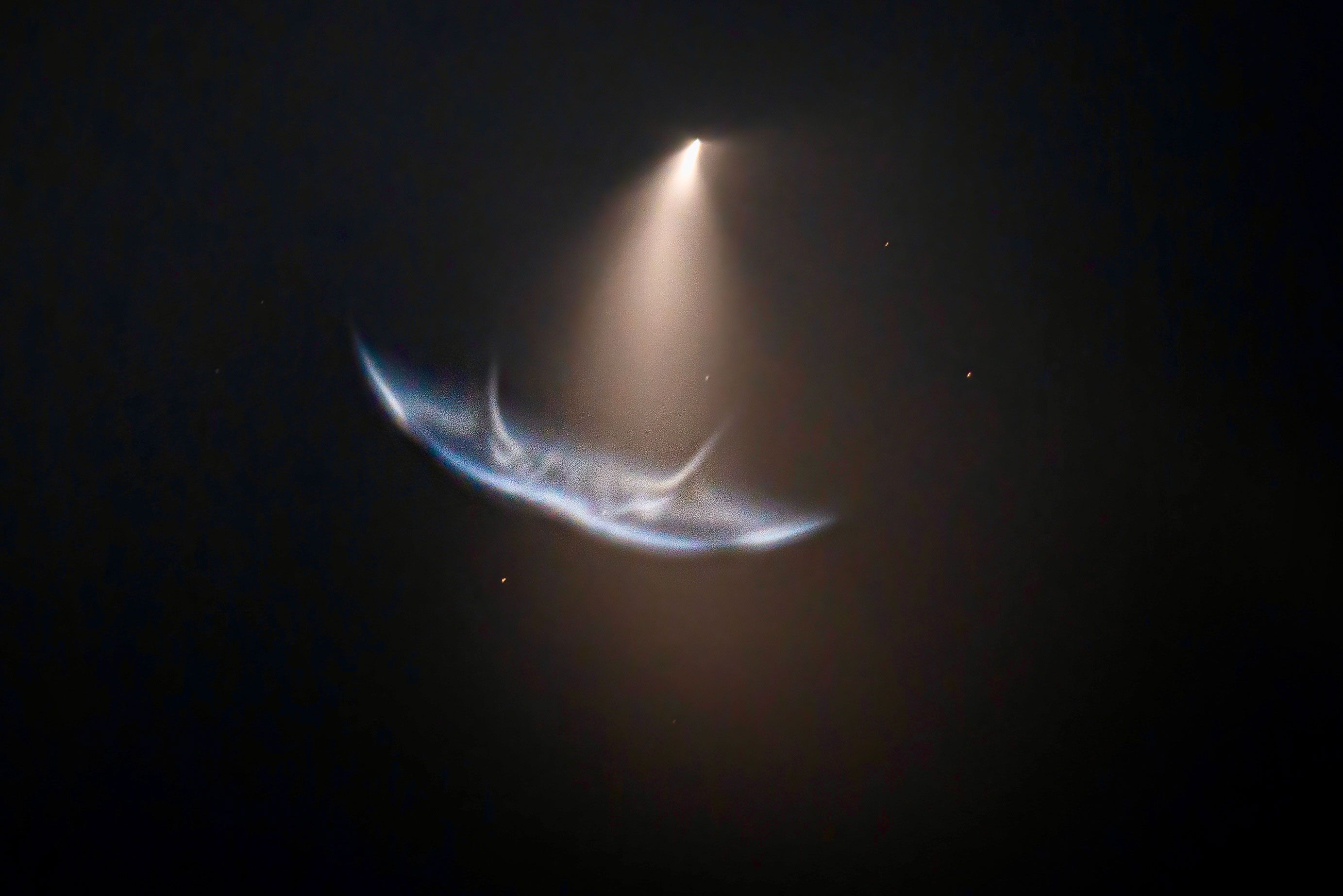 The incredible visuals produced in the pre-dawn sky were enabled by the exhaust plumes emitting from the Falcon 9 during ascent and separation.