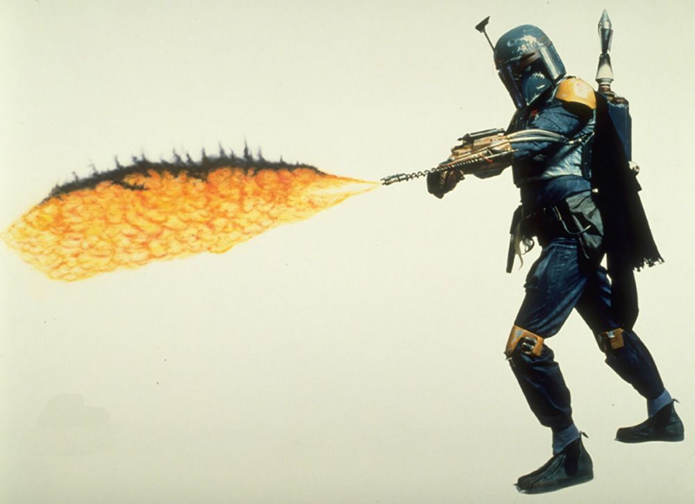 Promo Art of Boba Fett Firing Flamethrower (photo Boba Fett Fan Club)