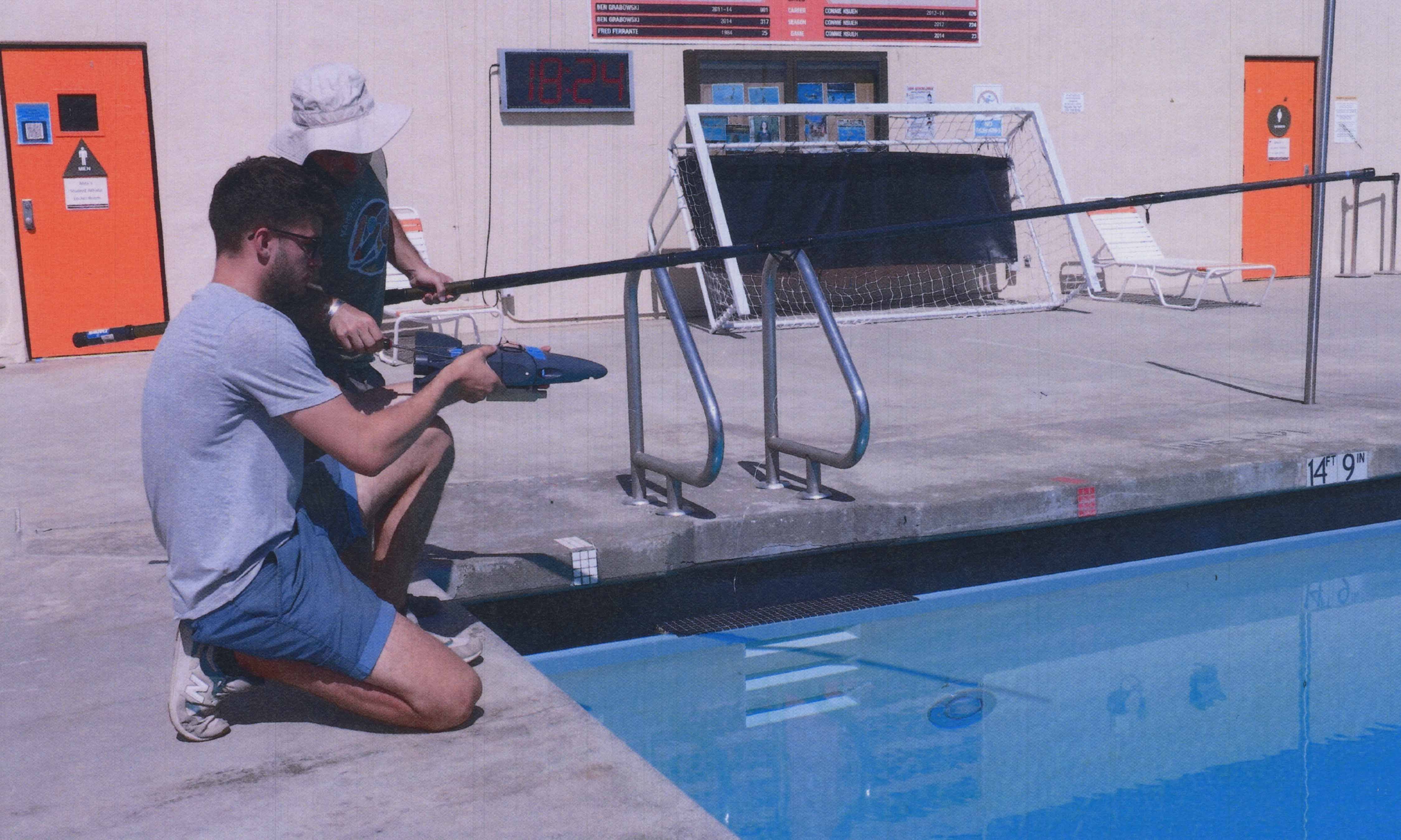 It’s a bright California summer day and JPL robotics engineer Ethan Schaler is standing poolside with a fishing pole. Shaler’s day job is driving the Perseverance Rover on Mars, but this morning he is working with two interns on testing the latest prototype for his Sensing With Independent Micro-Swimmers (SWIM) project.