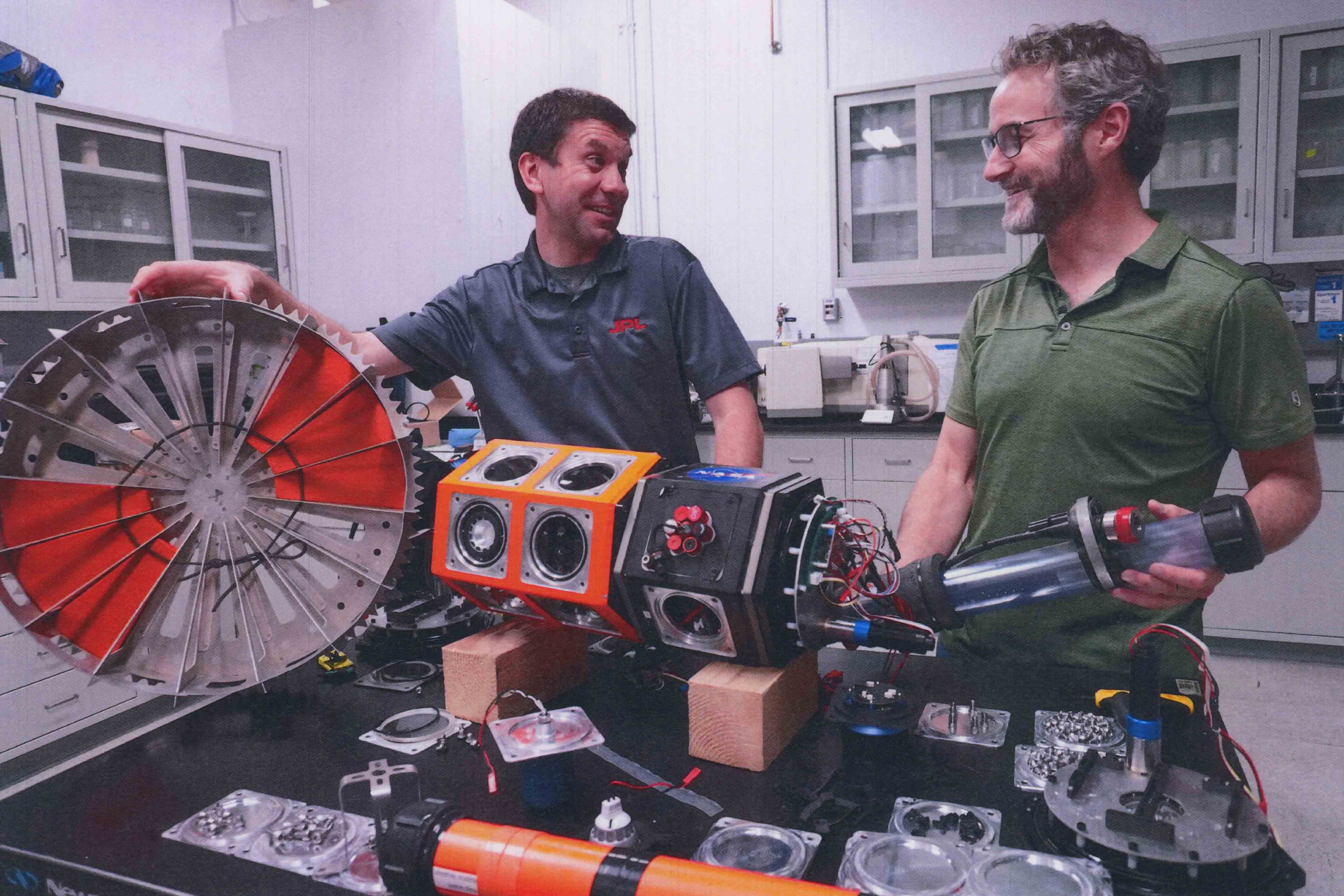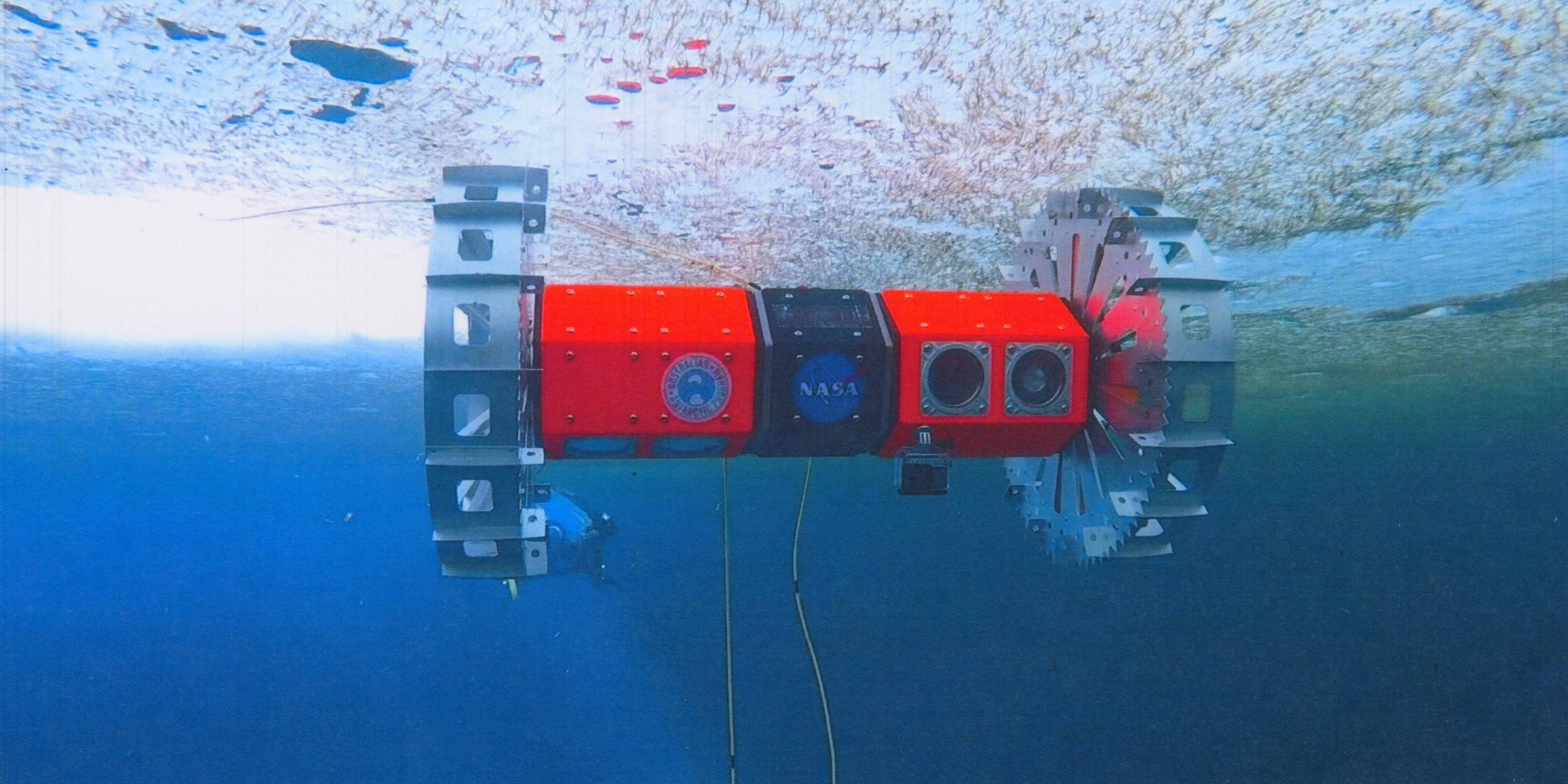 Hand and project systems engineer Andy Klesh are currently refining the Buoyant Rover for Under-Ice Exploration (BRUIE), a “ceiling rover” that travels on big wheels under the ice. BRUIE has been tested in Alaska and Antarctica and could serve as another kind of autonomous vehicle to explore Europa. One version functioned for five days under the ice running on AA batteries.