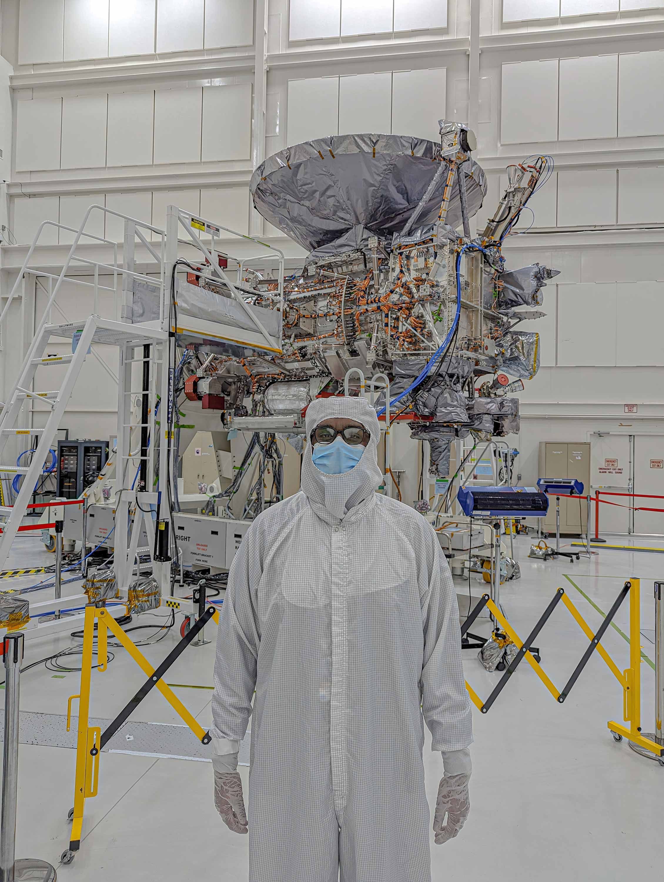 Now, Clipper is just six months away from launch and we were invited to visit the RV-sized probe at NASA’s legendary Jet Propulsion Laboratory in Pasadena, California, the first time I suited up for a clean room spacecraft visit since OSIRIS-REx was launched on its mission to Bennu in 2016. At the time, I wrote a dispatch for Popular Science about potentially contaminating the spacecraft (and the eventual asteroid sample) as a way to talk about contamination. It seemed like a fun idea at the time until the spacecraft returned home and I thought about booking a one-way trip to a non-extradition country.
