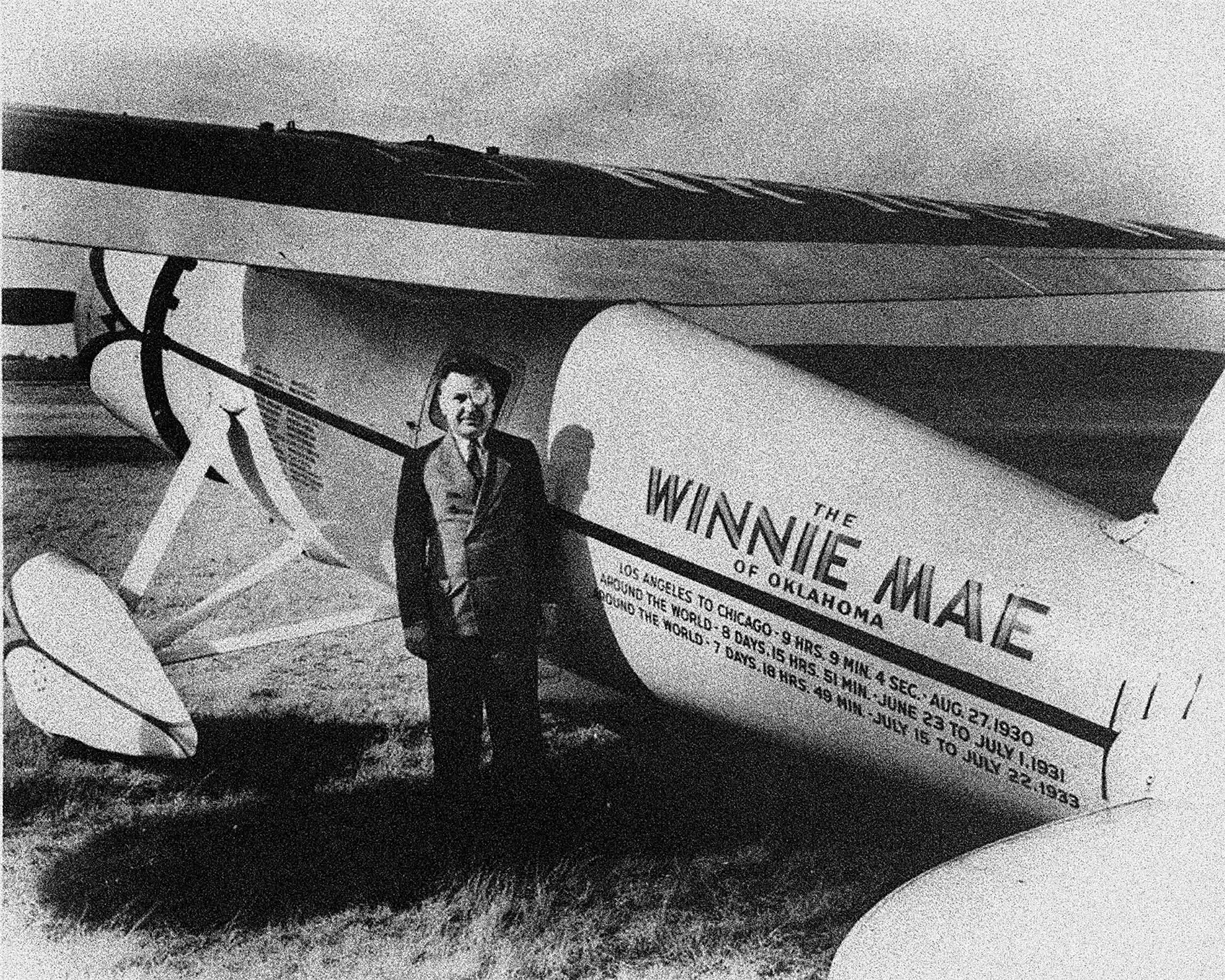 A portrait of Wiley Post (he substituted a glass eye in place of his eye patch for the benefit of the photo).